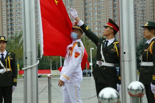 “国旗护卫队”守卫国旗迎着朝阳升起