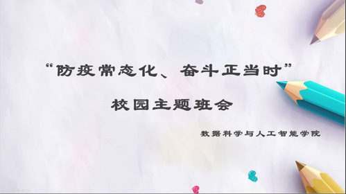 9月11-12日,数据科学与人工智能学院通过带领学生游校园、线上视频相结合的方式开展“防疫常态化,奋斗正当时”校园主题班会。班会累计召开20班次,753人次参会。数据科学与人工智能学院院长张世龙、党总支书记付洪涛、副院长王家宁、各专业负责人、德育导师、责任班导师及辅导员参会。