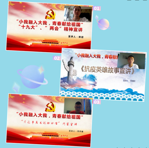 为深入贯彻落实团中央《关于在疫情防控常态化形势下做好2020年全国大中专学生志愿者暑期文化科技卫生“三下乡”社会实践工作的通知》,按照校团委统一安排和部署,8月6日,艺术与传媒学院团总支组织开展“小我融入大我,青春献给祖国”爱国主义精神宣讲活动。受疫情影响,此次社会实践活动采用“云”端互联与线下联动的形式开展。