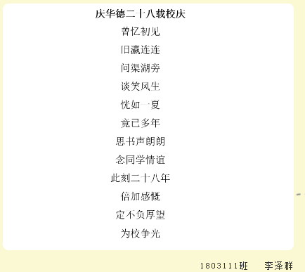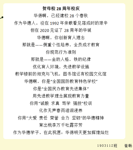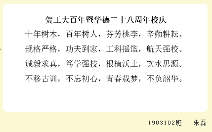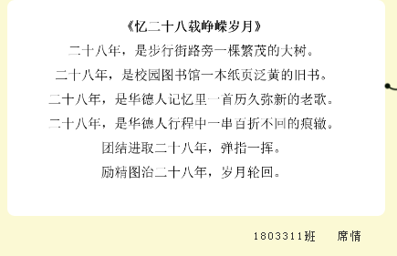 值此哈尔滨华德学院创办28周年之际,建筑学院学生以诗歌形式庆祝华德28华诞,以“感恩、思念”为主线,表达了对华德的真挚情感。
