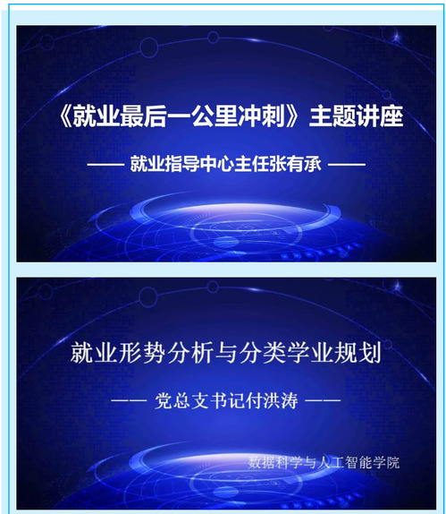 会上,张有承老师为同学们作《就业最后一公里冲刺》主题讲座,从转变就业观、国家开拓多渠道稳就业及鼓励学生打消顾虑等方面为大家深度剖析,强化了同学们主动就业意识。随后,党总支书记付洪涛,从就业形势分析与分类学业规划层面对同学们进行指导。最后,张世龙副院长分析了2020年严峻的就业形势和压力,并对疫情特殊期间新的面试、签约形式做了强调,要求同学们认清形势,多种渠道主动择业。
