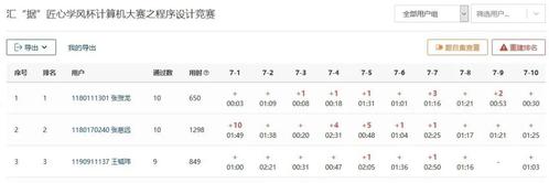 初赛、复赛中脱颖而出78名参赛选手。经过决赛3个小时的激烈角逐,来自2018级计算机科学与技术专业的张贺龙同学在比赛半程率先AK(解出全部题目),获得冠军;2018级数据科学与大数据专业张慈远同学在比赛结束前顺利完成AK,取得亚军;2019级计算机科学与技术专业王韬伟同学初生牛犊不怕虎,冲破高年级学长的包围,以解出9题的成绩取得季军。