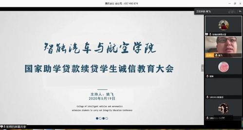 5月19日,智能汽车与航空学院组织召开线上国家助学贷款续贷学生诚信教育大会。学院党总支书记姜琳、各年级辅导员及学院88名2020年度办理生源地助学贷款续贷学生参加会议,会议由2017、2019级辅导员姚飞主持。