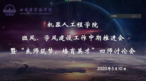 进一步贯彻落实学校班风、学风建设实施方案要求,充分发挥学院“四师”制和“双覆盖”模式在学生成长、成才过程中的引领作用,有效助力学院班风、学风整体建设工作,5月10日下午,机器人工程学院通过腾讯会议平台召开班风、学风建设工作中期推进会暨“良师筑梦,培育英才”四师线上讨论会。