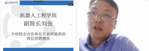 副院长刘张详细介绍了美的集团无锡小天鹅电器有限公司和哈尔滨九洲电气股份有限公司两家校企合作单位目前所提供的岗位招聘情况。