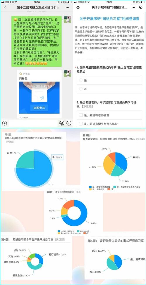 会议第二环节——“考研线上自习室”启动会。在疫情防控特殊时期,为缓解学生备考压力,帮助考研学子搭建一个考研交流平台,营造比学习、促学习的整体学习氛围,立志成才班指导教师金文雯结合我院“雏鹰计划”学风建设工程方案具体要求,以新媒体平台授课方式为参考,克服疫情带来的实际困难,创新提出成立“线上自习室”想法,通过“云”端自习室,创新互助学习模式。经学院领导同意,采用问卷调研的方式向考研学生征集成立意见和看法,得到了考研学子的一致好评。会议中,金文雯老师向同学们介绍了线上自习室的管理办法、线上平台使用方法等。当晚8时,立志成才班“考研线上自习室”正式在腾讯会议平台启动。