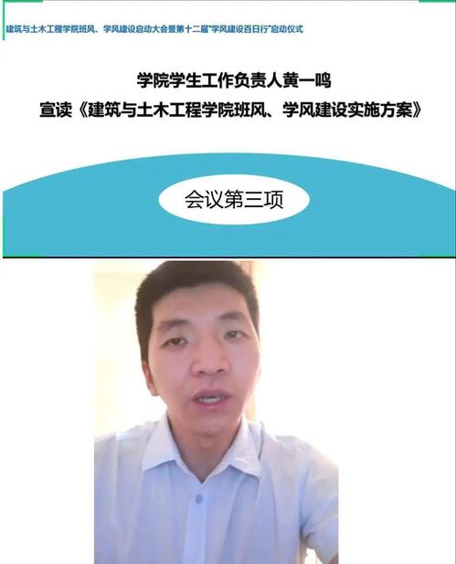 学院学生工作负责人黄一鸣宣读《建筑与土木工程学院班风、学风建设实施方案》。方案紧紧围绕立德树人的根本任务,以“三个切入点”为出发点,坚持教风学风建设与应用型人才培养模式改革相结合,坚持教风学风建设联动,坚持务实抓细,狠抓班风、学风建设,深化学风建设品牌,汇聚育人合力,营造“书海寻珍自奋勤”的学习氛围,引导学生做方向明、志气坚、珍惜光阴、发奋学习的华德人。