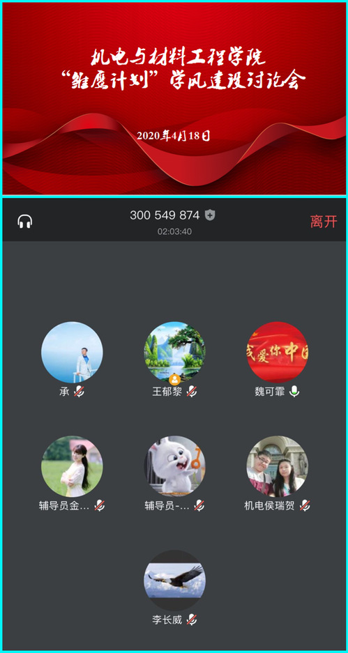 为深入贯彻落实全国全省教育大会精神,进一步发挥我校育人理念和整体建设理念在培育良好学风方面的重要作用,切实有效达到疫情期间教育教学质量与人才培养质量的双提高,4月18日,机电与材料工程学院利用“腾讯会议”平台召开了“机电与材料工程学院‘雏鹰计划’学风建设讨论会”。校长助理兼校党委组织部部长魏可霏、校长助理兼机电与材料工程学院院长李长威及学院全体学生工作者参会,会议由学院党总支书记王郁黎主持。
