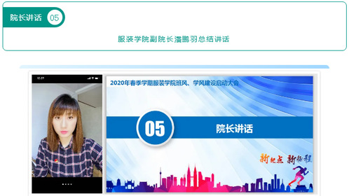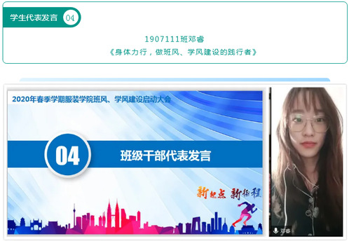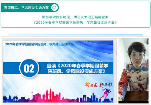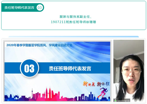 为了引导学生树立“只争朝夕,努力学习,不负韶华,筑梦前行”的意识,不断提高学院教学质量,营造学院良好院风,推动创建优良校风,4月19日上午,服装学院在“云”端召开2020年春季学期班风、学风建设实施启动大会。服装学院副院长、责任班导师及任课教师出席大会,学院各班级主要学生干部及院学生会全体成员参会。