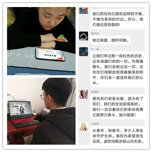 全校200余个班级团支部近7000名团员青年参与活动,同学们踊跃在“感言寄语”板块留言,用饱含深情的文字寄托对先烈的哀思和今后投身祖国建设的决心。
