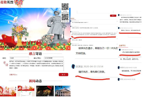教职工纷纷在“献花敬英烈”板块为英烈献花,在“感言寄语”板块寄语留言,并通过“英烈报告录播”、“英烈事迹展播”和“品读红色故事”板块重温红色故事。