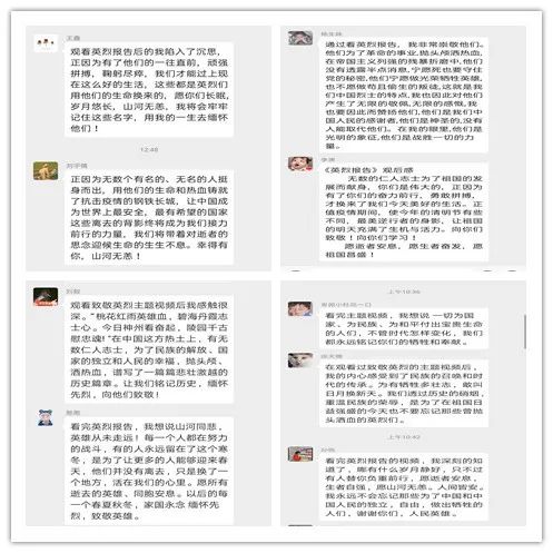 部分班级团支部在班级群内进行活动“百字微言”感悟交流分享,进一步加深了活动体会,强化了教育效果。