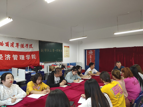 8月25日,经济管理学院在第一教学楼317教室组织召开分院学生会第一次工作布置会议。经济管理学院团总支负责人赵强、全体院学生会副部以上学生干部参加本次会议。