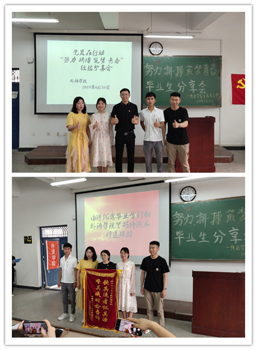 6月26日,外语学院直属党支部在教五201室举行“努力 拼搏 筑梦 青春”毕业生分享会。外语学院院长兰巧玲、副院长钱清华、外语学院直属党支部书记魏明磊、组织委员高巍、宣传委员何明波出席会议,外语学院学生代表参加此次分享会。
