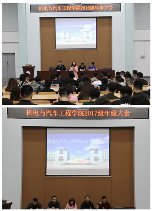 根据校院整体工作安排,结合当前学生工作重点,机电与汽车工程学院于4月23日在第二教楼学生文化活动中心分年级召开全体在校生年级大会。学院党总支书记王郁黎、副院长周启新分别出席,会议按照年级分三个场次进行。