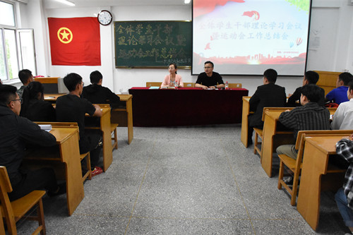 5月30日,机电与汽车工程学院在第四教学楼401教室召开全体学生干部理论学习会议暨运动会工作总结会。机电与汽车工程学院党总支书记王郁黎、团总支书记杨志承出席,分院全体学生干部和全体运动员参加会议。