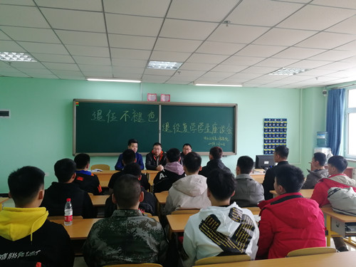 学院领导对全体退役复学学生寄予三点希望。一是希望退伍复学学生把部队的优良传统和作风带回学校,要用满满的正能量影响广大同学;二是要尽快实现角色转变,融入校园生活,全面完成从优秀士兵到大学生的转变,从遵守部队纪律规定到遵守学校规章制度的转变,从适应部队生活到适应学校班集体生活、学习生活的转变;三是要把学习生活放在首位,走好未来人生道路。