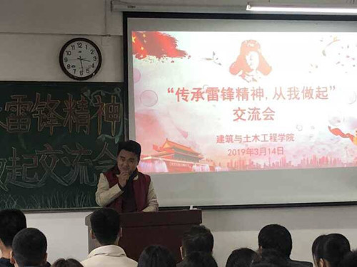 为更加深入地学习传承雷锋精神,践行社会主义核心价值观,建筑与土木工程学院于3月14日在教五211教室开展“传承雷锋精神 从我做起”主题交流会。活动邀请“上海慈善公益基金会年度优秀学子”获得者、1603111班余光摇同学主讲,分院2016级、2017级、2018级学生代表参与活动。