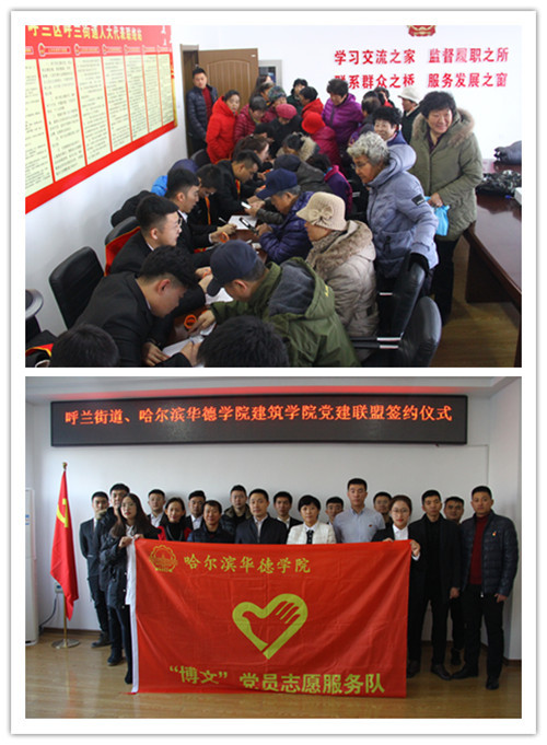 (郝云松/文)为深入贯彻落实十九大精神,不断加强基层党组织凝聚力,创新党建工作方法,提升区域内党建工作合力,11月20日,建筑与土木工程学院师生代表赴呼兰,与中共呼兰街道工作委员会开展党建结对共建签约及志愿服务工作。呼兰街道党工委书记韩雨才、呼兰街道办主任王春颖、建筑学院常务副院长王洪枢、党总支书记王郁黎、建筑学院师生代表及呼兰街道20余家党建联盟成员单位代表出席本次活动。