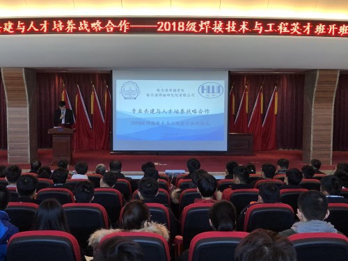 (李滨/文)11月6日上午,我校在哈尔滨焊接研究院有限公司学术报告厅举行“哈尔滨华德学院与哈尔滨焊接研究院有限公司专业共建与人才培养战略合作暨2018级焊接技术与工程英才班开班仪式”。我校副校长顾鹂鸣,哈尔滨华德学院机电与汽车工程学院副院长吴柏宇、周启新,哈尔滨焊接研究院有限公司副总经理陈健、哈尔滨现代焊接技术有限公司副总经理林晓辉及哈尔滨焊接研究院有限公司企业学业导师们及相关领导出席仪式,机电与汽车工程学院焊接技术与工程专业教师代表、机器人学院教师代表及2018级焊接技术与工程英才班全体同学参加本次开班式,开班仪式由机电与汽车工程学院焊接技术与工程系主任郝亮老师主持。