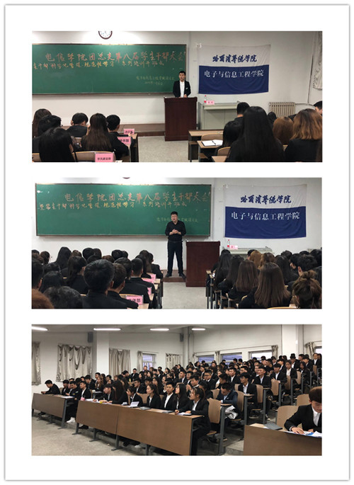 (鹿明/文)为进一步提升我院学生干部综合素质,增强工作能力,提高工作效率,强化学生干部在校园建设工作中的作用,电子与信息工程学院于11月6日下午16:30在教五501室召开团总支第八届学生会干部全体大会暨学生干部“科学化管理,规范性学习”系列培训开班式。学院团总支书记鹿明作为主讲人出席会议,第八届学生会全体学生干部共136人参加此次会议。