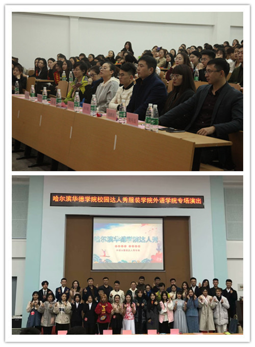 (王艳艳/文)11月9日,服装学院与外语学院在学生文化活动中心联合举办哈尔滨华德学院校园文化艺术节系列活动——校园达人秀专场演出。校团委书记姜琳、校团委副书记刘信义、服装学院常务副院长潘鹏羽、外语学院副院长钱清华、服装学院团总支书记王艳艳、外语学院团总支书记魏明磊、艺术与传媒学院团总支书记孙洪鹏及部分教师代表出席本次活动。校社团联合会、各分院学生会主席团代表及服装学院、外语学院学生参加活动。