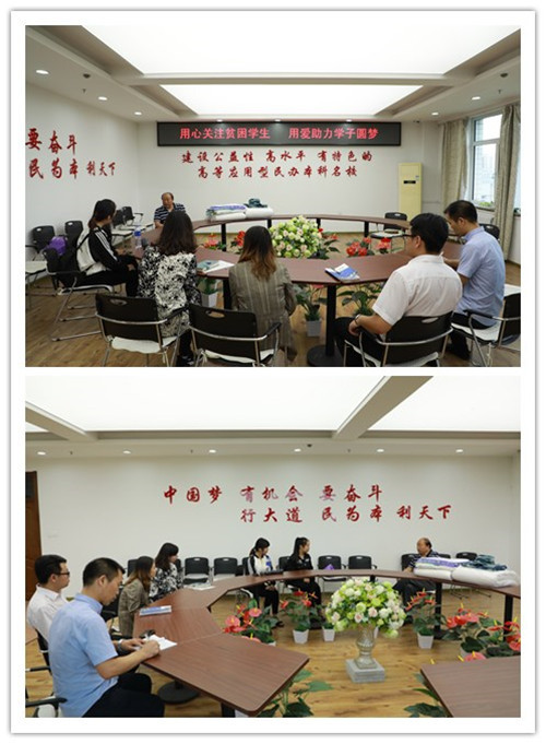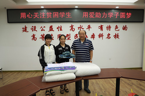 (康春丽/文)9月4日,是我校2018级新生正式报到后的第3天,来自河南的新生李贞同学在校助学中心办理完生源地国家助学贷款手续后,表示还有部分费用不能交齐,学工处教师了解到情况后及时上报学校。学校各级领导高度重视,校长顾德库在与李贞同学见面时关切地询问了她的家庭情况,并为她准备了被褥、军训服装等学习生活用品,鼓励她要好好读书,立志成才,“华德是更利于你们成长的地方,因为华德的理念就是让每名学生成为对社会有用的人。”李贞同学在座谈中表示,来到华德得到这么多老师的关怀和帮助,感觉很温暖,今后一定要好好学习,用优异的成绩回报社会和学校。