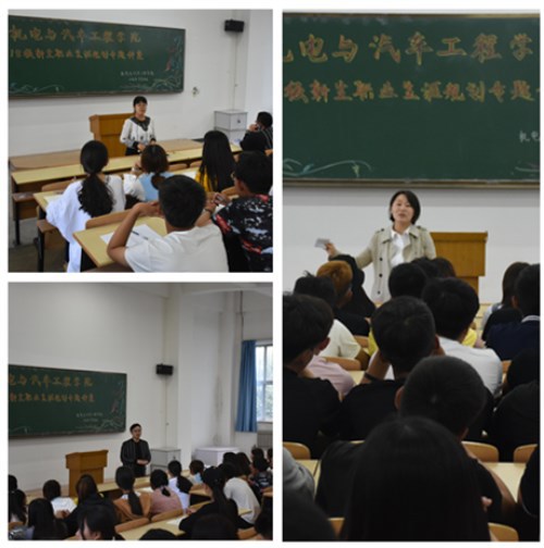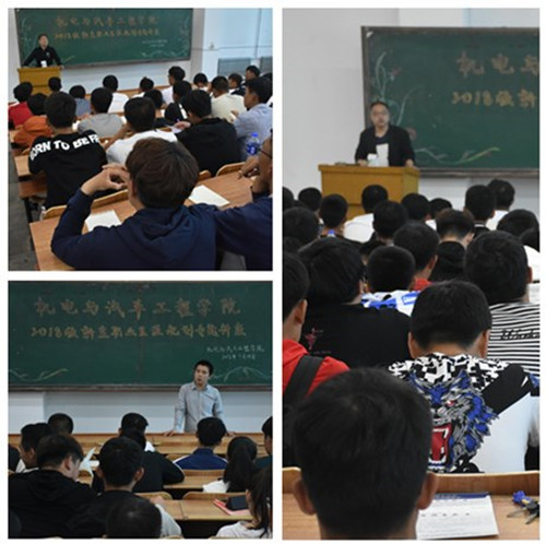 (李滨/文)为帮助学院2018级新生更快更好地适应大学生活,制定大学目标,有计划有步骤地完成学业,机电与汽车工程学院于9月14日下午分别在第二教学楼J101、J102教室举行2018级新生职业生涯规划专题讲座。职业技术教育学院院长助理张碧莹、机电学院副院长周启新出席,职业技术教育学院及机电学院相关教师参加会议,学院全体2018级新生聆听了专题讲座。
