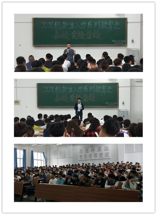 (黄一鸣/文)9月2日,建筑与土木工程学院开展2018级新生入学系列教育之知校·爱校·荣校专题讲座。建筑学院团总支书记黄一鸣、辅导员孙宇锋、学生会干部、2018级辅导员助理以及2018级全体新生参加活动。