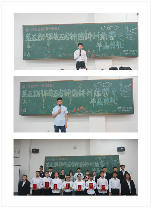 (黄一鸣/文)为贯彻我校“侧重个性培养,全员成才教育”育人理念,创新课前五分钟演讲的活动形式,6月24日,建筑与土木工程学院在教二J202室举行第五期“课前五分钟演讲”训练营毕业典礼。建筑与土木工程学院团总支书记黄一鸣、演讲训练营指导员、学员以及2017级全体同学参加活动。