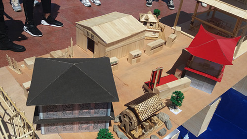 模型建筑以屈原故里为原型,以北京四合院为模板,分别设有私塾、酒楼、茶楼、棋社、舞台、杂货铺等。模型用雪弗板、瓦楞纸、竹签、胶水等材料历经两个月制作完成。主持人针对“中华传统节日、龙舟、活动初衷、建工情怀、模型、后记”六个部分对模型进行讲解,让观展师生更加了解龙舟与端午的由来。分院学生通过模型制作,表达了华德学子对中华传统文化的自豪感与认同感。