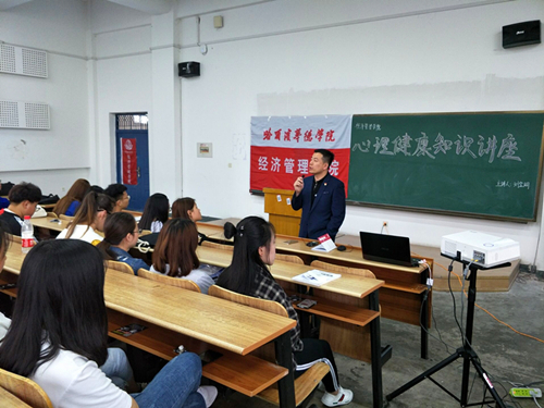 (赵青梅/文)为帮助学生强化心理健康理论知识,培养良好心理品质,塑造健全人格,经济管理学院于5月14日晚17时在教二J401室举行心理健康知识专题讲座。讲座由经济管理学院刘金明副院长主持并主讲,分院大一至大三年级全体寝室长及心理联络员聆听讲座。