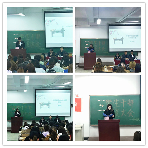 (魏明磊/文)4月18日,外语学院在教五302室举行学工系统加强学风建设工作系列活动——外语学院学生干部动员大会。出席此次会议的有外语学院团总支书记魏明磊、院学生会主席宋洋、院副主席谷思宇以及全体学生党员、学生会干部、志愿团成员。