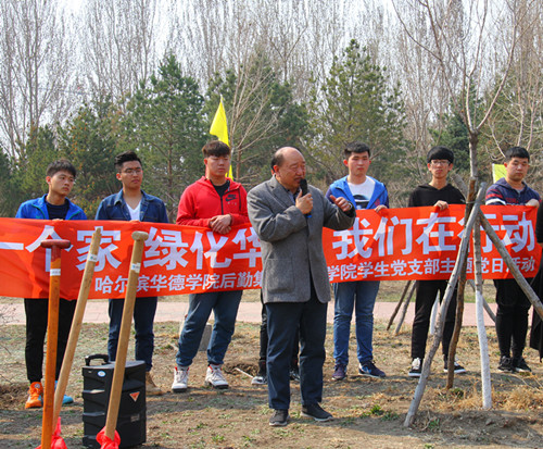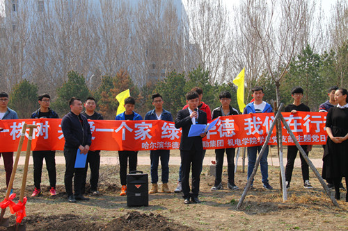 (李滨/文)为感恩母校,饮水思源,让思念根植于华德,让福泽永远流传,机电与汽车工程学院于4月19日在励耘广场开展“感恩母校,饮水思源,植树育林,美化华德”建校爱校植树系列活动。校长、党委书记顾德库,副校长邓维娜,校长助理兼后勤集团副总经理王克生,校长助理兼机电学院院长李长威,党群工部部长魏可霏,学生工作处处长康春丽,校团委书记姜琳,机电与汽车工程学院党总支书记付洪涛,副院长周启新等出席了仪式,仪式由学院党总支组织委员赵强主持。机关第六党支部党员,机电与汽车工程学院全体辅导员及部分教师、“博文”党员志愿服务队学生学员代表参加了当天的植树活动。