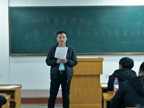 (肖春丰/文)为打造校园良好卫生环境,共创文明校园,电子与信息工程学院于2018年3月6日在教五402室召开2018春季学期初环境小组工作动员部署大会。学院劳动负责人肖春丰老师、纪检生活部部长、环境小组全体成员参加大会,大会由肖老师主讲。