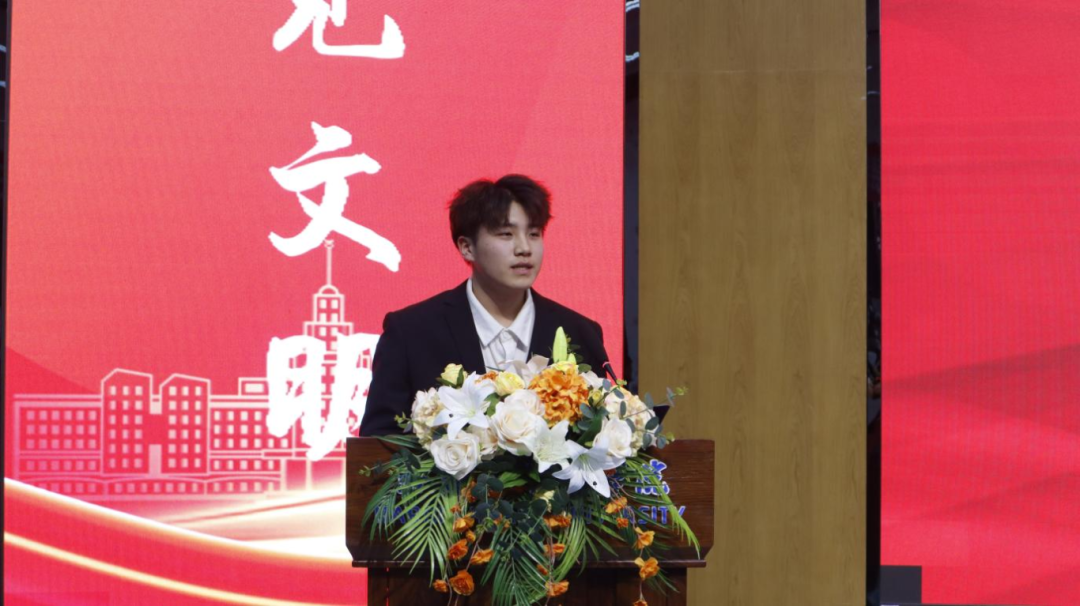 △公寓学生自律委员会代表、智能制造工程学院王言鸣同学宣读《大学生公寓文明公约正负清单》