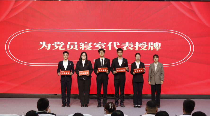 组织部部长王薪宇为党员寝室代表授牌,以实际行动诠释“一名党员就是一面旗帜,一间党员寝室就是一座堡垒”的先锋理念。汽车与建筑工程学院学生党员代表衣红伟同学庄严宣读《哈尔滨华德学院学生党员寝室文明建设承诺书》,誓言以“排头兵”姿态践行公约,带动全体学生共建文明家园。以“亮身份、做表率、扬新风”,推动党建与育人深度融合,为文明创建注入红色动能。