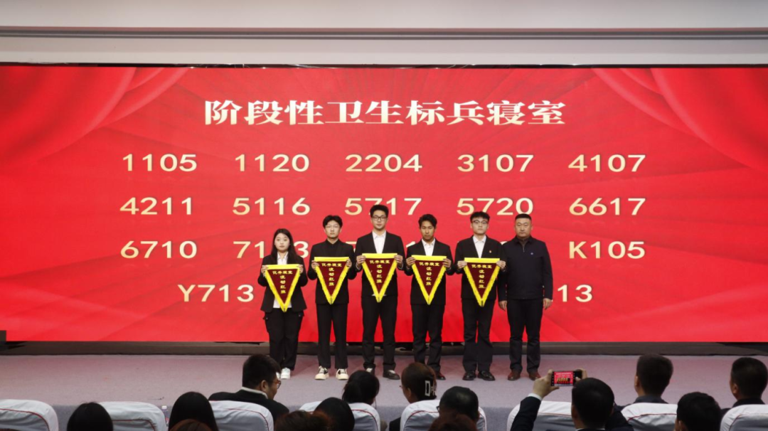 公寓管理中心主任邸均为阶段性卫生标兵寝室代表授予“流动红旗”,1105、1120、2204等17间寝室在公寓日常检查中脱颖而出,成为首批卫生标杆。卫生标兵寝室长代表、智能制造工程学院杜超同学分享经验时表示:“寝室不仅是栖身的港湾,更是梦想启航的地方 。秉持‘眼里有活、心中有爱’的理念,唯有全员参与、互相监督,方能让优秀成为习惯。”通过经验分享,将个人自律与集体共进紧密结合,形成“学有榜样、行有方向”的育人新风尚。