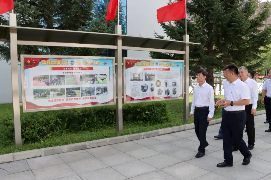 8月27日,退役军人事务部党组书记、部长裴金佳率调研组一行深入哈尔滨华德学院,就“双拥共建、支持退役军人就业工作”进行专题调研考察。黑龙江省副省长余建、黑龙江省退役军人事务厅厅长杨国利、哈尔滨市副市长杨淑鹏、哈尔滨市退役军人事务局局长王利等陪同调研。