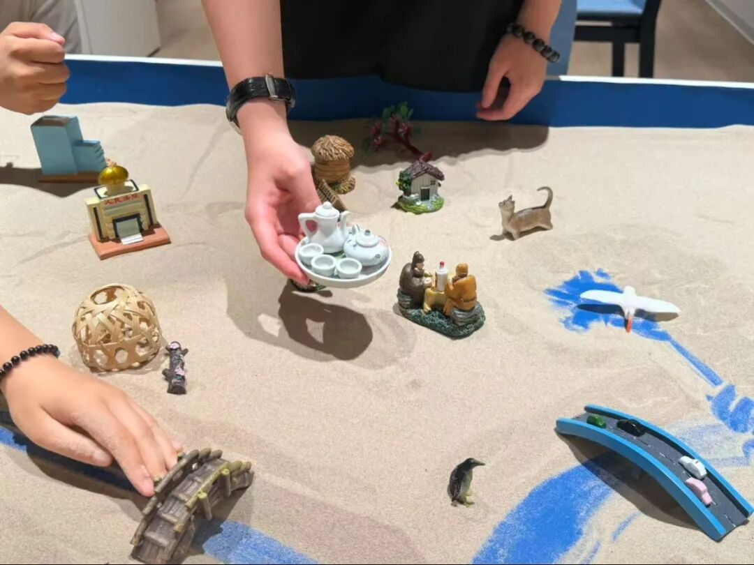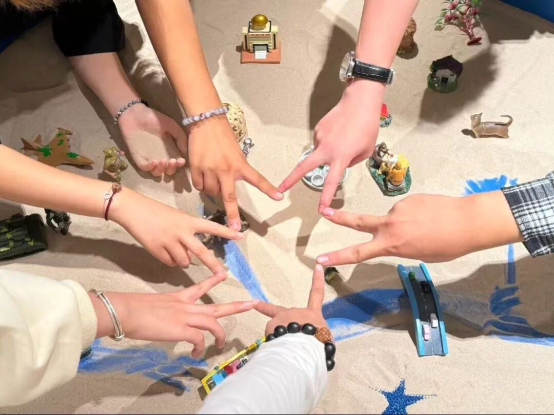 首场辅导“人际互动密码”由郭亚茜老师主持。本次活动引导学生通过沙具选取与场景构建,逐步表达“个人性格”“深入关系”及“团体人际”的心理意象过程,使学生认知不同层面人际关系对自身情绪状态及行为模式的影响,并鼓励学生在自由、受保护的活动空间中积极交流,进而增强其自我反思能力及人际自信。