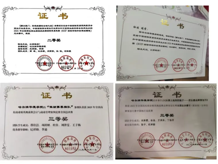 正是这份不甘平庸的钻劲与韧劲,让她在学业与竞赛赛道上双双出彩:连续斩获校级二等奖学金 2次 、三等奖学金 2次 ,顺利取得初级会计职称;并在全国高校商业精英挑战赛这一高水平赛事平台上屡创佳绩 —— 2024年9月荣获国际贸易竞赛东北地区总决赛三等奖,2024年11月勇夺国际贸易竞赛(RCEP国际市场开拓策划赛道)全国总决赛二等奖,2025年5月斩获品牌策划竞赛全国总决赛(新加坡)全球品牌策划大赛三等奖,2025年6月再获会计与商业管理案例竞赛全国总决赛三等奖。 多张国家级荣誉证书背后,是她精益求精的追求与全力以赴的付出。她始终坚信,优秀的财经人才既要精于计算、长于分析,更要具备商业视野与实践能力,这份对专业的敬畏与热忱,让她的求学之路既有深耕细作的定力,更有突破自我的锐气。